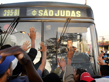 We soon learned from the rep that the airline had arranged hotel rooms for us and we’d need to take one of the chartered buses assembled outside to get there. This sounded simple enough, but when we entered the steamy Brazilian night and confronted the calamity of the strike, we realized that just getting on a bus would be an ordeal in itself.