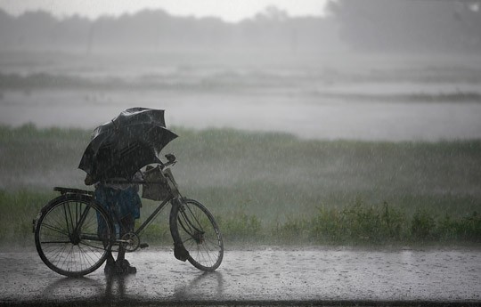 A farmer tries to protect himself from heavy rain near Singur, about 31 miles north of the eastern Indian city of Kolkata. REUTERS/Parth Sanyal