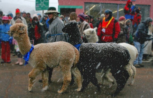 The alpacas, who represented a Nederland alpaca store, were cute and scared. Were they rattled by the advancing hearses behind them?