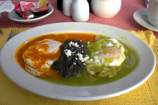 Mexico: Most North Americans are familiar with at least one Mexican breakfast: huevos rancheros. Featuring corn tortillas topped with fried eggs and red ranchera sauce, and usually served with frijoles, this dish is practically standard at breakfast counters from Austin to Soho. But in Mexico there are many other ways to order your huevos. Huevos divorciados (pictured; literally, divorced eggs) are an amicable split on the theme, with one egg-topped tortilla soaked with salsa roja and another smothered in salsa verde (a milder sauce made from tomatillos). Other eggy delights include huevos peleados and huevos a la Mexicana.