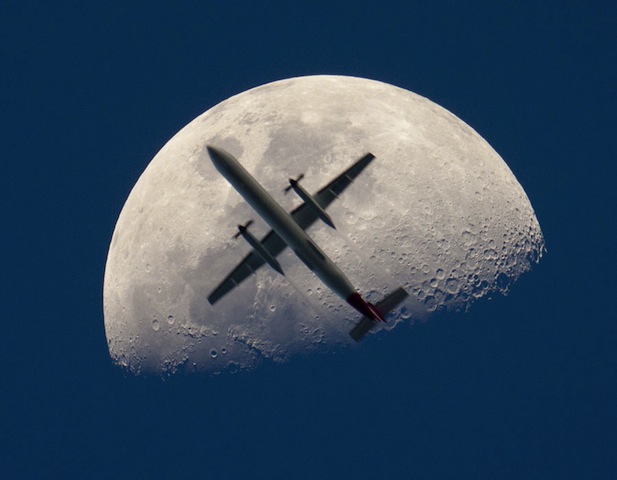 NASA’s Astronomy Picture of the Day from Wednesday. Love the start of the caption as much as the shot: “If you look closely at the Moon, you will see a large airplane in front of it.”