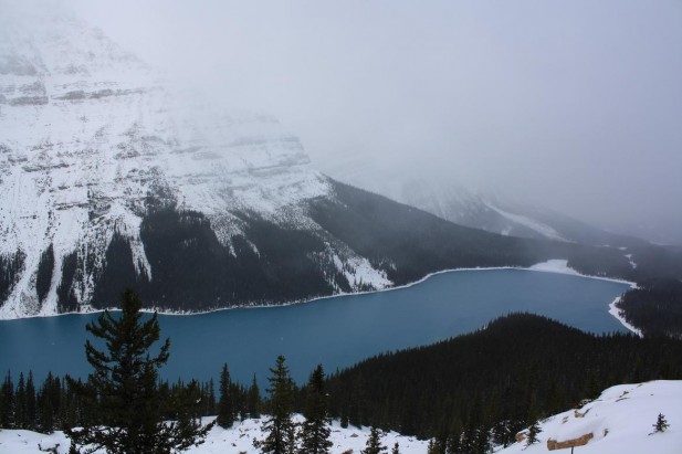 I love the photo! The lake is so nice and so blue and the snow made the view a perfect one!