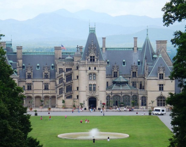 Sneaking away to do some hardcore hiking on Mt. Mitchell and some equally serious relaxing at the winery on the Biltmore Estate. I love little mountain towns like Asheville, North Carolina, that know how to serve up just the right mix of outdoors and creature comforts. Here’s a photo of America’s largest home, with the Great Smoky Mountains as a backdrop: